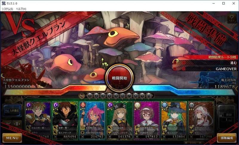 防御寄りの面子で構成してみたけれど、支援除去ユニットも入れた方がよかったかなと感じた。