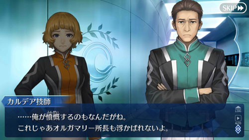 フォウを探しにいったマシュと別れて、カルデア内をウロウロしていると、カルデア技師ダストンと管制室スタッフシルビアが会話している場面に遭遇した。