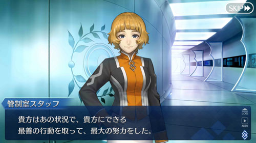 カルデアスタッフの立ち絵が表示されたのは、これが初めてだった……と思う。