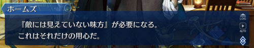 ここで初めて(?)、『カルデアに召喚された英霊の中にホームズはいない』という体で書類や報告が作成されていたことがダヴィンチちゃんの口から判明する。