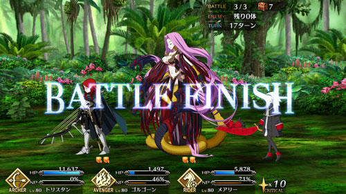 かなりマシュが粘ってくれたおかげでクリアはできたが、経過ターンといい残りメンバーといい、ギリギリでボロボロな戦いだった。
