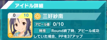 三好紗南のアピールが相手を上回れば、Round終了時にPPが『37』アップする。