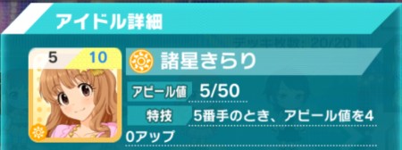 選曲に問題がなく、ちゃんとアピール&特技発動に成功していけば、きらりのアピール値はえげつないことになる。