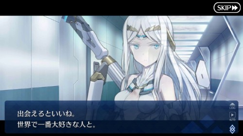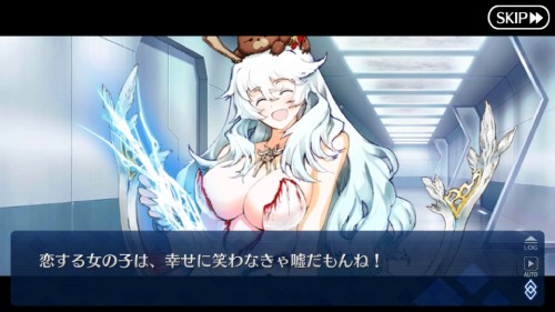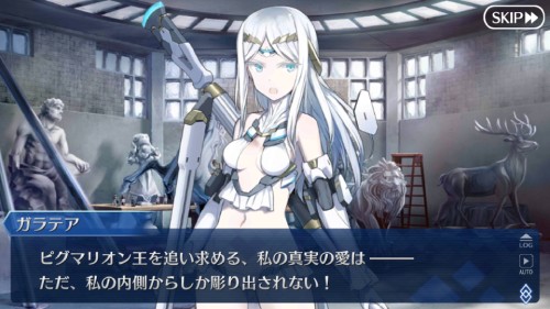 婦長に近いバーサーカーと聞いた時は(失礼ながら)もっと取っつき辛いキャラのようにも思えたが、ガラテアは想像以上に人間臭くて他者への気遣いもできる、すごく良い娘だった。造形物故の純粋さや清らかさがありつつ人間味もあって、絶妙なバランスで出来ている。