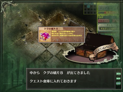ハゲはさておき、迷宮内を右往左往していたところ、これもまた久々の【クグの破片B】を発見した。