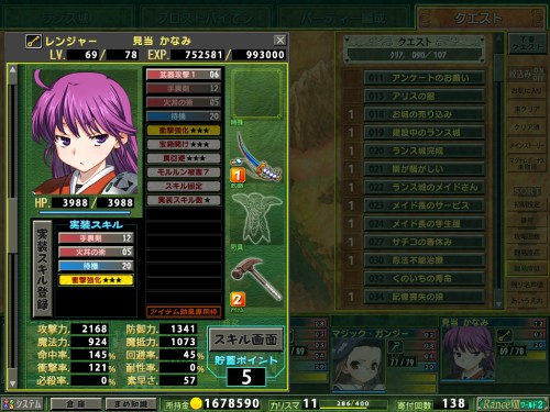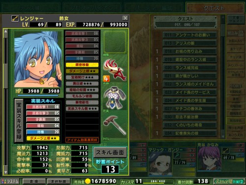 ランスは我が軍の一軍ガチゴリファイター、かなみは後衛専門の攻撃寄レンジャーとして相変わらず【隠密移動】は未所持。