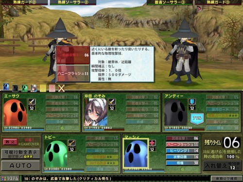基本的にのぞみちゃんにおんぶだっこ、他の連中はミリ残った相手のトドメをさしたり全員で敵一体倒したりがせいぜいなので、時間がかかる以上にのぞみちゃんの負担がデカすぎる。