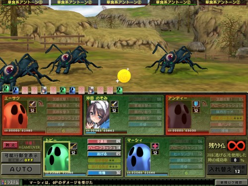 ただ雑魚戦では即【逃げる】のつもりでいても素早さの高いのぞみちゃんがトップ行動になってしまうことが多く、何もせずとも毒でジリジリとHPが削れていってしまうのが悩ましくもあった。