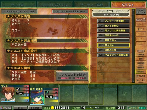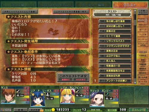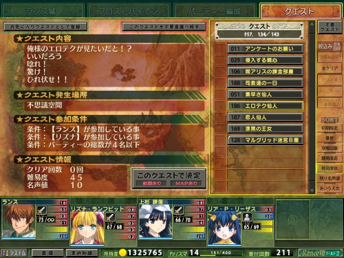 『エロテク仙人』に必要なのはランスに好意を持った三人の女子(リズナ含む)と、ランス自身のスキル【SE×技術】。